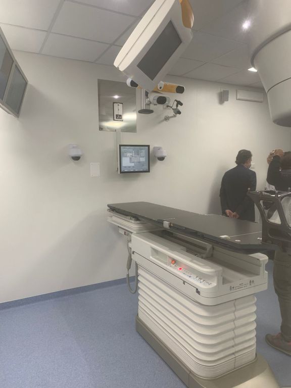 Il personale dell’ospedale ha seguito un percorso di formazione specifica per sfruttare appieno le potenzialità della macchina, che è accessoriata con un sistema di monitoraggio istantaneo del paziente basato sull'acquisizione contemporanea di due immagini a raggi X: in questo modo, è possibile rilevare movimenti o cambiamenti di organi e strutture interne al corpo del paziente durante l'erogazione del trattamento, garantendo massima protezione dei tessuti e degli organi circostanti rispetto al bersaglio.