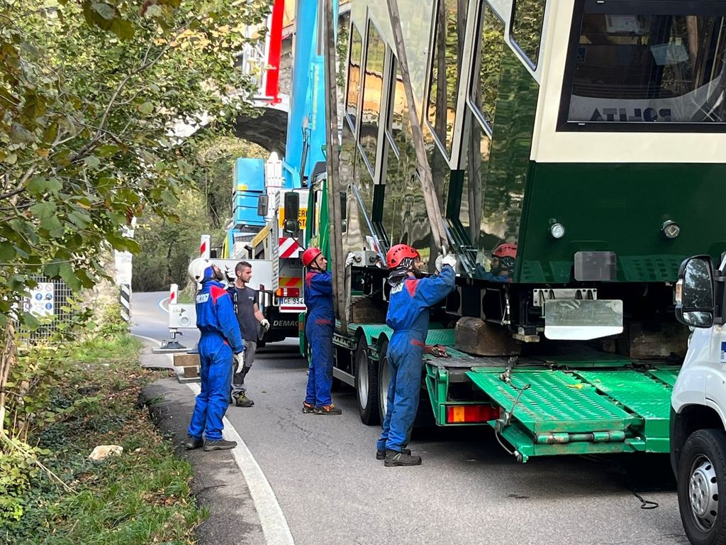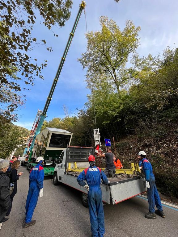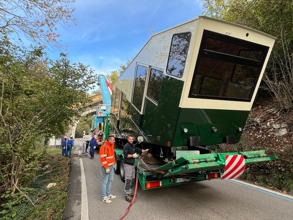 Alle 9 di oggi la cabina è partita dal piazzale dello stadio raggiungendo il ponte a metà della strada per Santa Maria del Monte: dopo la fase preparatoria, il vagone è stato collocato sulla ferrovia intorno alle 10.20 grazie a una gigantesca gru e al lavoro dei tecnici. Durante le operazioni, la strada è rimasta chiusa.