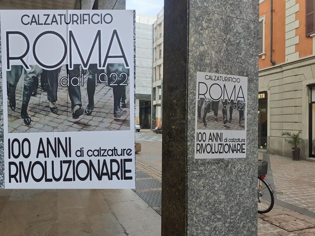 Sembra l'anniversario di un'azienda, ma ovviamente non lo è. Sono comparsi nella notte sotto i portici di via Milano a Busto i manifesti ”Calzaturificio Roma, dal 1922. Cent’anni di calzature rivoluzionarie”. La scritta, su foto con scarpe e stivali in marcia. Ogni riferimento alla marcia su Roma non è affatto casuale, ma l'approccio appare decisamente più ironico rispetto a quanto, ad esempio, successo nella capitale. In comune c'è solo l'essere abusivi.