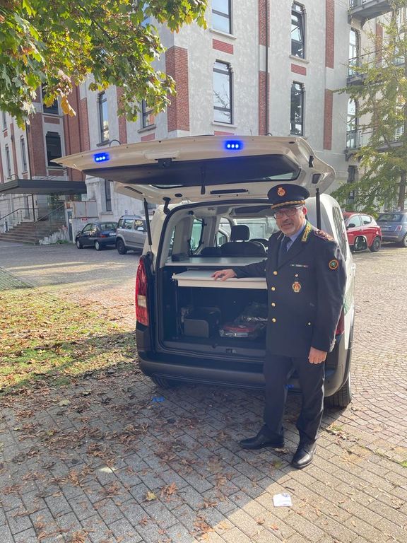 Si tratta di un veicolo “Peugeot E-Rifter Active 136 CV”, dotato di un allestimento speciale interno che lo rende un vero e proprio ufficio mobile con un piano scrittura estraibile, dotato di luce dedicata e presa per alimentazione per gli apparati elettrici.