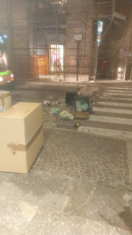I rifiuti si sono disseminati lungo la carreggiata, così come i contenitori e hanno creato intralcio alla circolazione, in particolare degli autobus. Alcuni cittadini, armati di buona volontà, hanno liberato la sede stradale prima che i rifiuti fossero raccolti dall'azienda Sangalli.