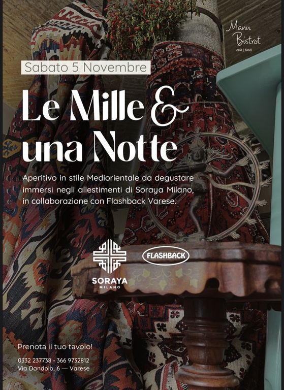 In collaborazione con “Flashback Varese”, Varese accoglierà infatti “Le mille e una notte” nella location che unisce due eccellenze varesine con l’ausilio dello chef Michele Currò che coronerà con gusto la serata, tra piatti della tradizione persiana come il kebab Kubideh e cocktail selezionati per l’occasione.