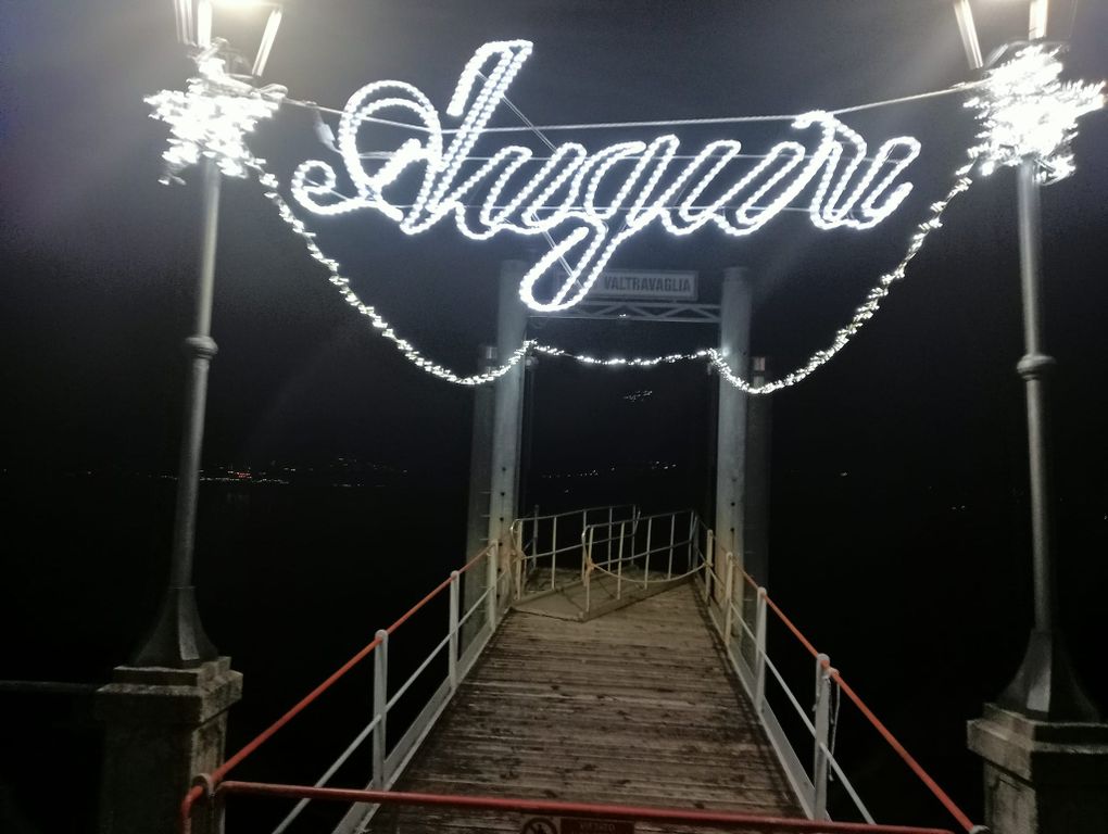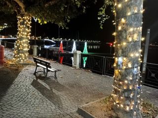 Porto Valtravaglia, il suo lungolago, il porto, il municipio, gli edifici, gli alberi si stanno colorando grazie alle lucine di Natale.