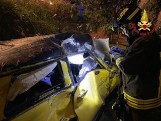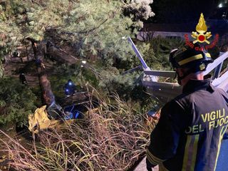 FOTO. Paura nella notte a Luino: un'auto sfonda il guard rail, colpisce una pianta e finisce nel giardino di una villa