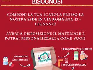 La seconda novità è la possibilità di realizzare la propria scatola solidale direttamente presso la sede legnanese di Casaringhio Aps utilizzando il materiale sfuso raccolto. Questa iniziativa vuole favorire l’incontro e la collaborazione tra Persone che per svariati motivi non siano nelle condizioni di provvedere autonomamente alla realizzazione dei pacchetti. Per gli orari e ogni ulteriore informazione si raccomanda di chiamare il numero 3457824030.