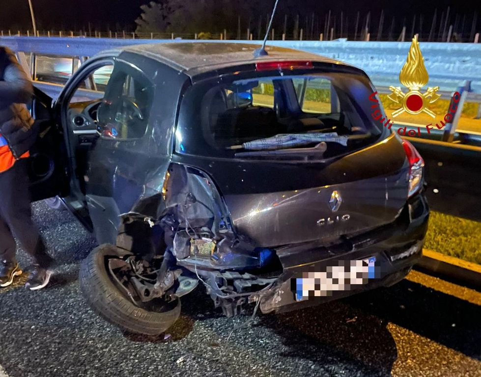 FOTO. Paura sulla Pedemontana per un incidente: un'auto prende fuoco, coinvolta anche un'ambulanza