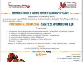 Due le iniziative per sabato 26 novembre: un convegno dalle ore 9.30 - in presenza e online - nella sede di via Maspero su “Parkinson e alimentazione” ed un concerto musicale la sera al Salone Estense.