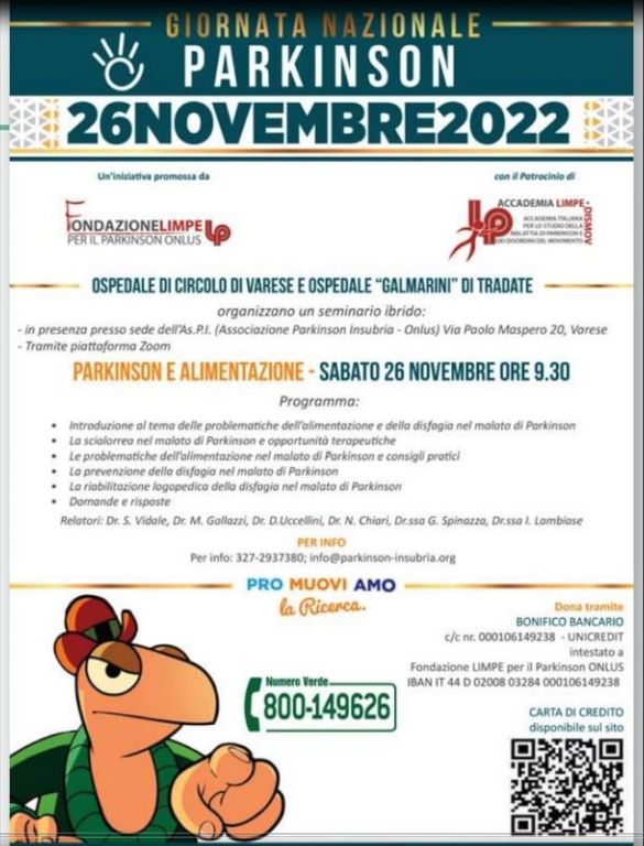 Anche a Varese la mobilitazione è generale da parte dell’Associazione Parkinson Insubria onlus che da trent’anni si occupa di sensibilizzare pazienti e caregivers su come contrastare gli effetti di una malattia neurologica che coinvolge oltre 6.000 famiglie tra la Città giardino e la sua provincia.