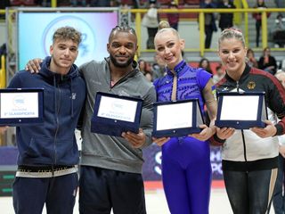 È stato poi il momento del Trofeo Fastweb Gran Prix, una competizione in cui gli atleti italiani si sono confrontati con quelli europei su 7 attrezzi. In ogni specialità, maschile e femminile, si sono sfidati un ginnasta italiano e uno straniero in una gara diretta, con l’assegnazione di un punto da parte della giuria per la squadra dell’atleta vincente.