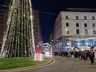 Al primo buio, intorno alle 17.30, oggi pomeriggio è avvenuta l'accensione dell'albero di piazza Monte Grappa e delle circostanti luminarie, così come il primo pienone per il mercatino e le sue bancarelle.