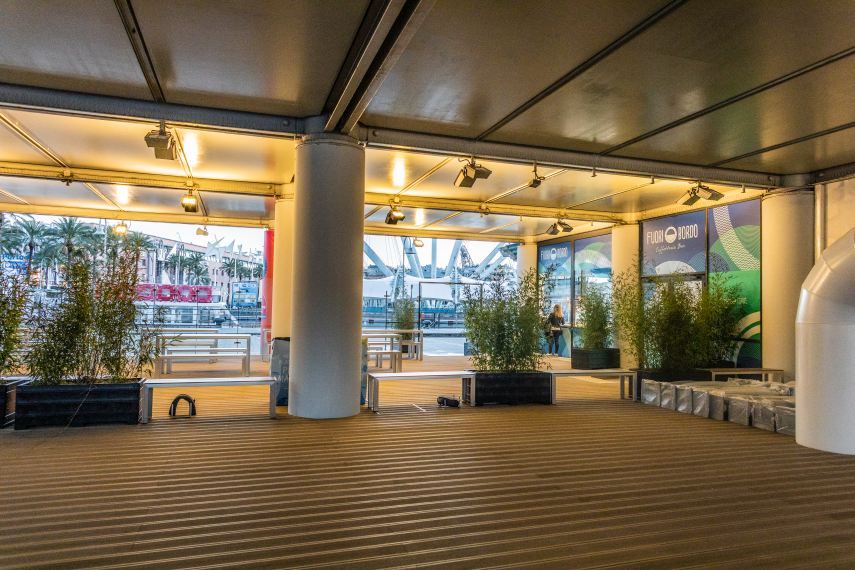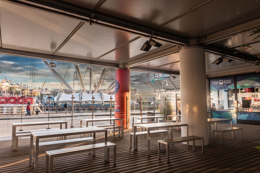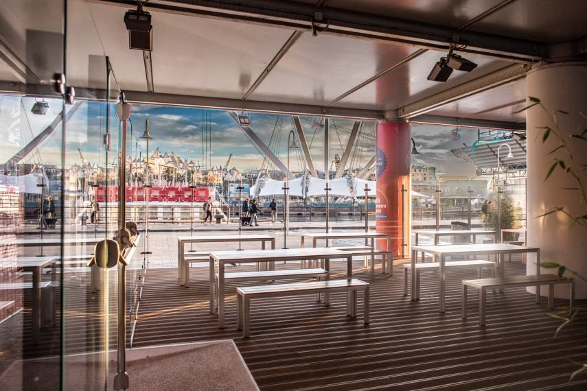 Un progetto che punta alla valorizzazione di un’eccellenza cittadina anche attraverso la riqualificazione dell’area di ponente del Porto Antico. In questo senso hanno ricoperto un ruolo importante anche le operazioni di rifacimento dello spazio frontale dell’edificio, con la realizzazione di un dehor dedicato in parte all’accoglienza di gruppi e scuole, con accesso libero, e in parte come pertinenza del punto ristoro riservato ai clienti della Città dei Bambini e dei Ragazzi e dell’Acquario.