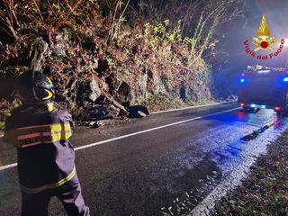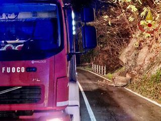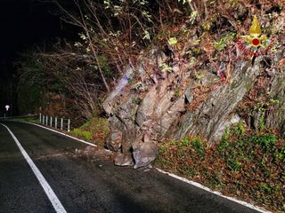 L'allarme è scattato intorno alle 20.30 di domenica sera, quando alcuni massi hanno invaso la carreggiata. I vigili del fuoco e i tecnici al lavoro: disposto lo stop al traffico, lunedì mattina nuovi accertamenti