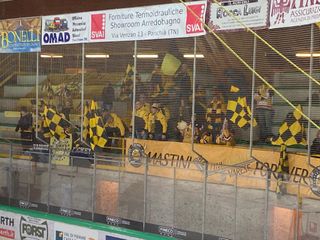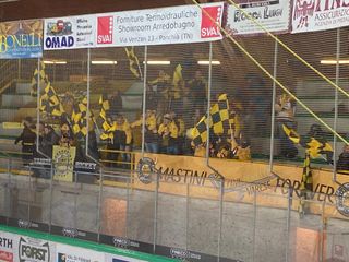Notte magica a Cavalese per l'abbraccio poderoso del numeroso pubblico varesino che è sceso in pista prima, durante e dopo la partita per trascinare i Mastini vittoriosi 5-2 (leggi QUI).