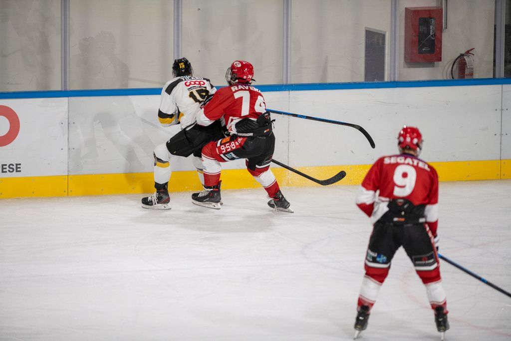 Era già iniziata nel modo migliore, con una serpentina a disegnare il numero 91 sul ghiaccio e ad aggirare la porta ospite, prima che il disco, rimasto sempre attaccato al bastone durante questo numero da Carolina Kostner, venisse conficcato in fondo alla rete da Edo Raimondi, primo gol da prima linea per il 91 giallonero, uno dei giocatori che ci ha fatto reinnamorare dell'hockey a Varese quando sembrava difficile poterci riuscire ancora.