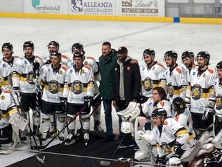 Avanti così: applaudono anche capitan Ferrero, annunciato dallo speaker e osannato dalla folla, e Markel Brown della Pallacanestro Varese, alla fine scesi pure a far festa sul ghiaccio insieme ai Mastini, ma anche i giocatori del Rugby Varese e quelli del Città di Varese, mischiati in mezzo ai mille in delirio.