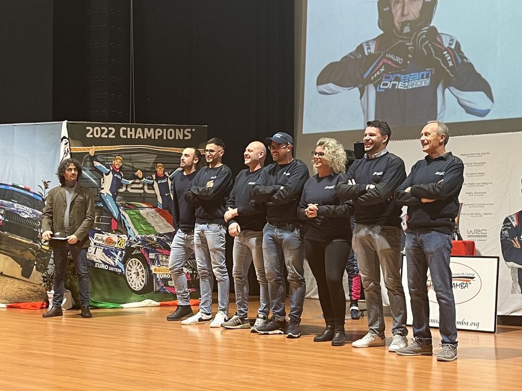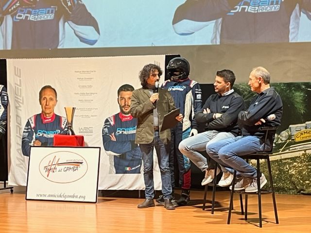 L'auto è ancora in viaggio, qui sfila tutta la squadra DreamOne Racing. È - anche - un'impresa di famiglia, Simone Miele che da pilota è diventato team manager, come è sceso in campo l'altro figlio, Andrea. Ma la stessa Rosanna, luminosa narratrice del percorso di suo marito.