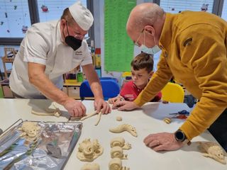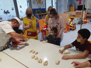 Il gruppo capitanato, da Franco Borroni, con tanto di grembiule, ha organizzato il laboratorio creativo con la pasta di pane. Le magiche mani di Angelo Canova hanno aiutato i bambini a modellare lumache, ricci, tartarughe, coccodrilli, trecce e persino una rosa da donare alla mamma. Una volta pronto, il pane è stato messo in forno per poter poi diventare un bellissimo oggetto.