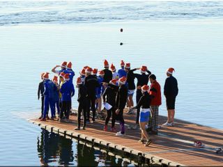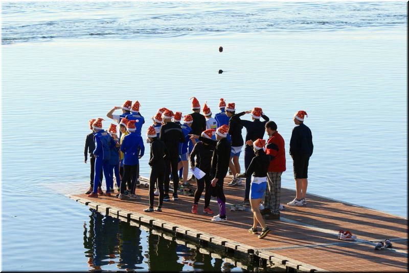 Durante la mattinata si potranno gustare tè, cioccolata calda e vin brulè sulla riva davanti alla Canottieri in un'atmosfera natalizia, a partire dagli sfidanti tutti rigorosamente con il cappello di Babbo Natale e dalla musica a tema.