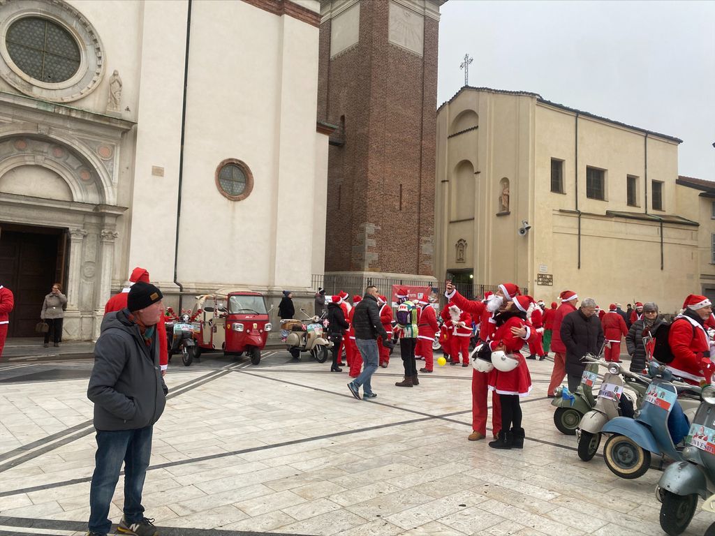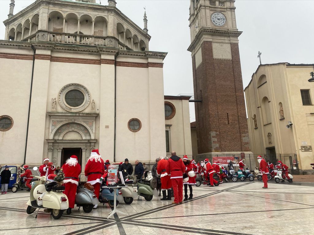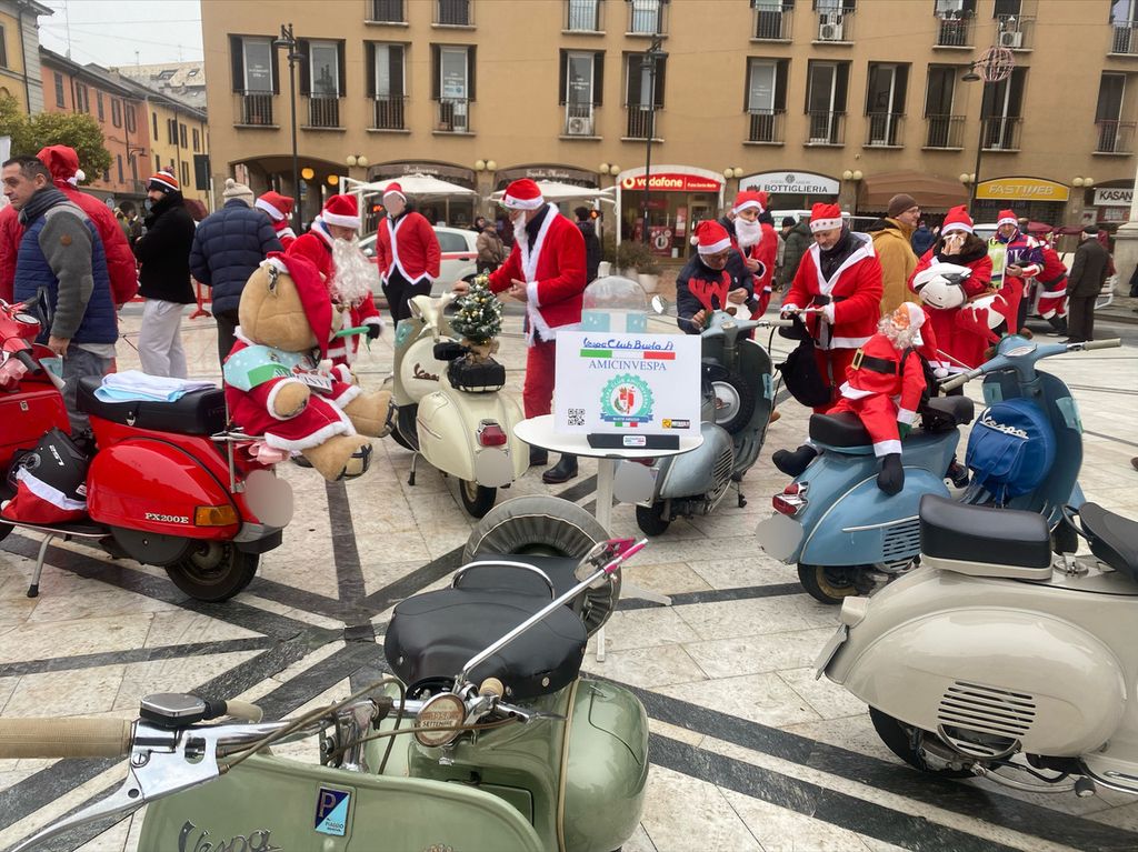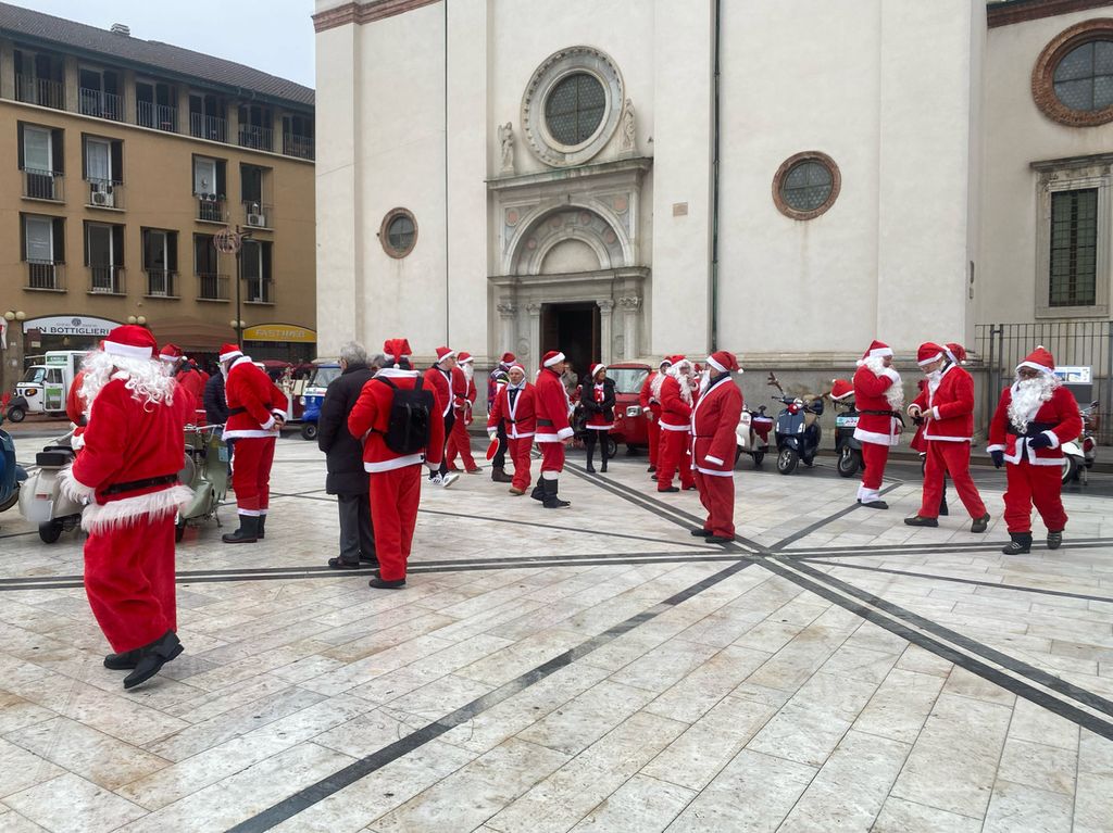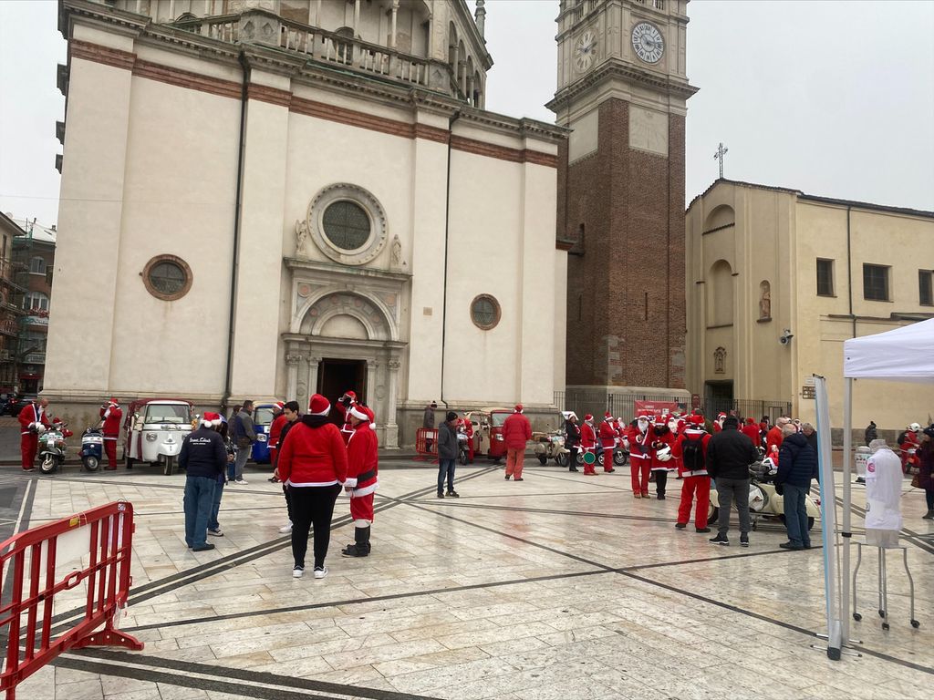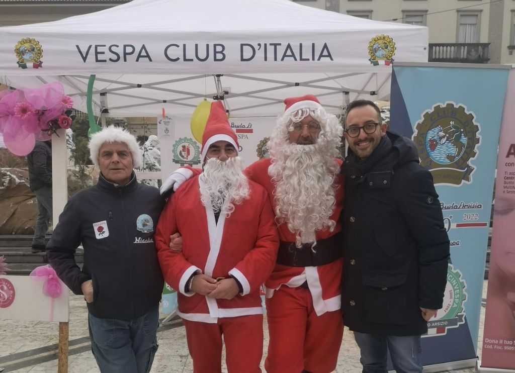 In una mattinata grigia, come quella di oggi, gli Amicinvespa del Vespa Club Busto Arsizio vestiti da Babbo Natale hanno portato un po’ di colore in pazza Santa Maria. Un evento patrocinato dal Comune di Busto Arsizio e con lo scopo di raccogliere fondi da donare a due associazioni della città: Casa Gialla e Caos.