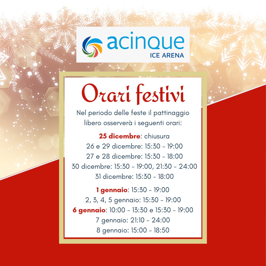 Ecco dunque il video di Natale dell'Acinque Ice Arena e degli SdueT per lanciare gli orari del periodo festivo che trovate in fondo all'articolo oltre che allegati e che garantirà più pomeriggi e più sere disponibili per tutti tra magici suoni e colori abbaglianti dei nuovi impianti della struttura invidiata da tutti e inaugurata dal Presidente della Repubblica Sergio Mattarella.