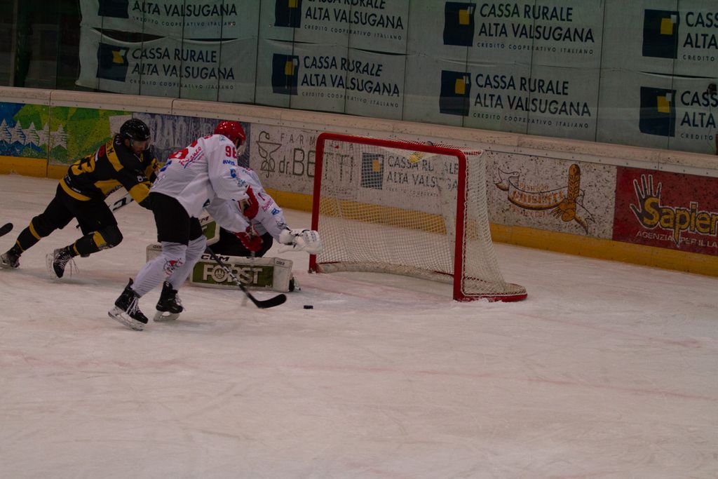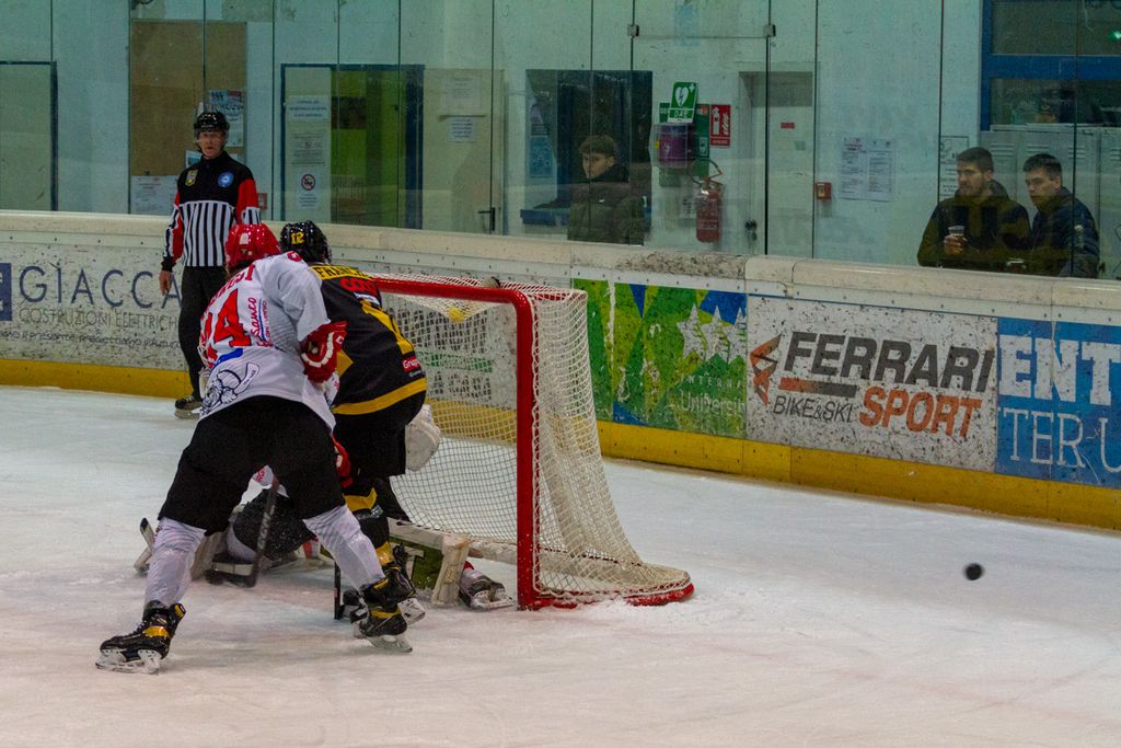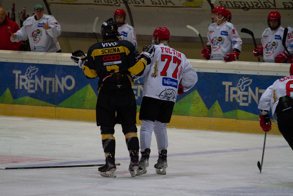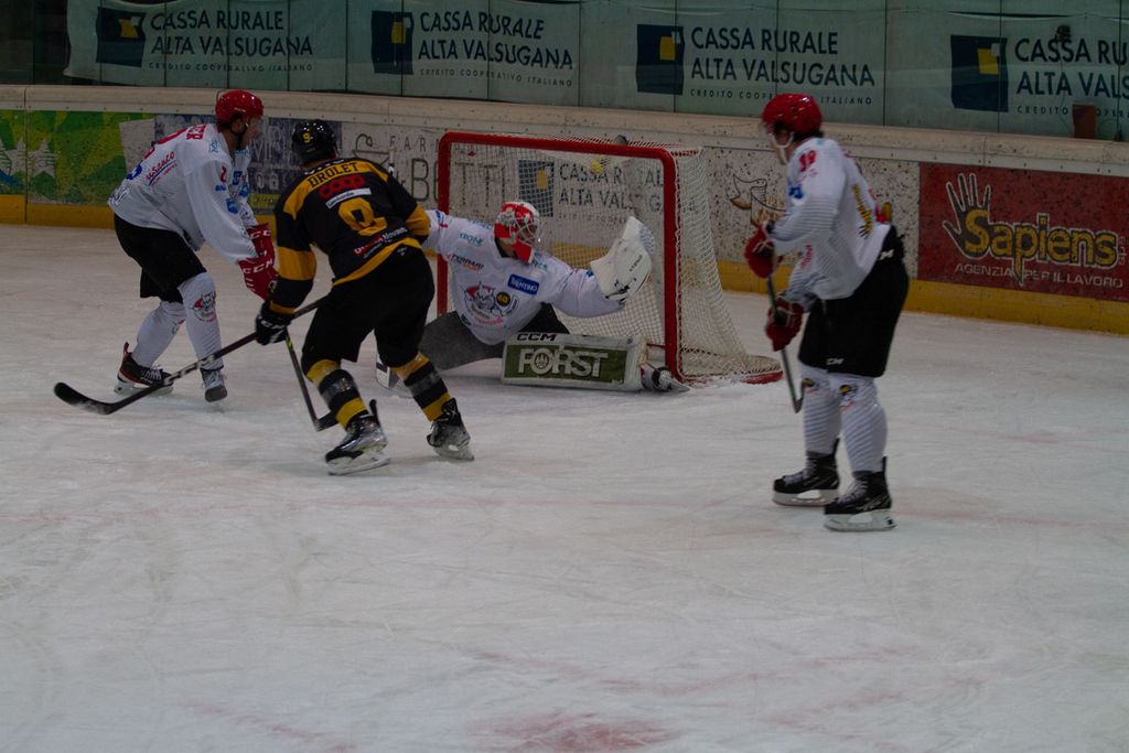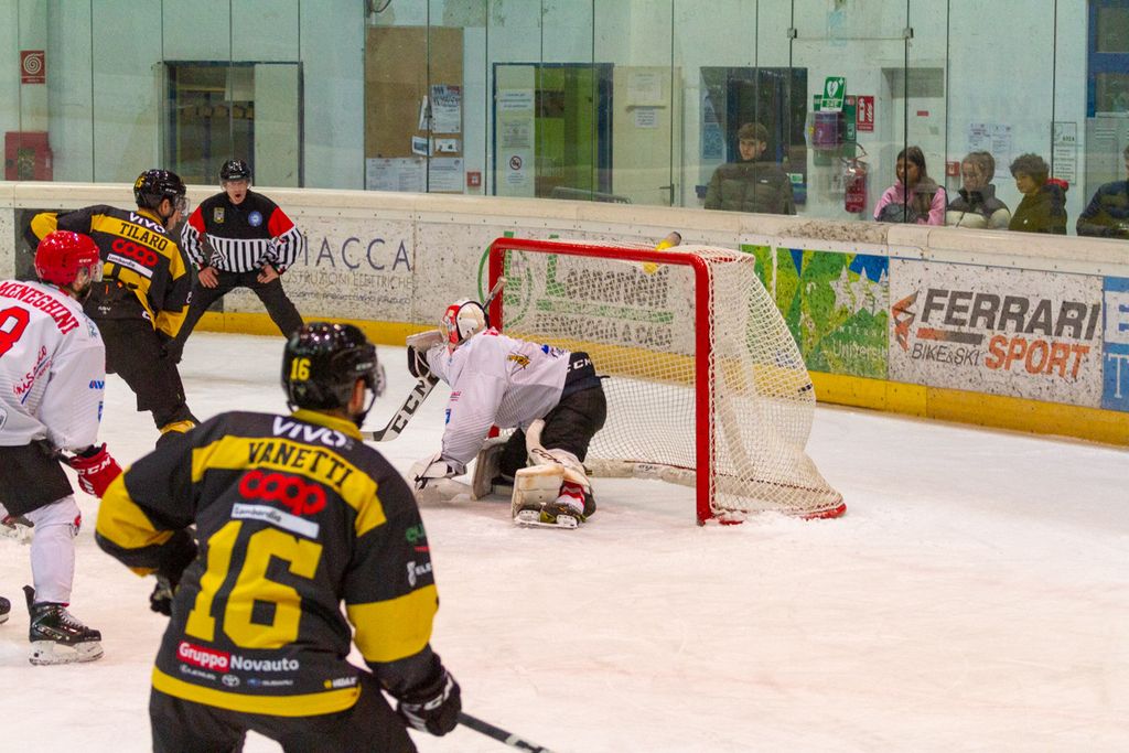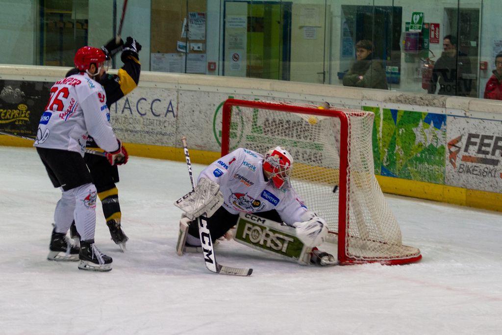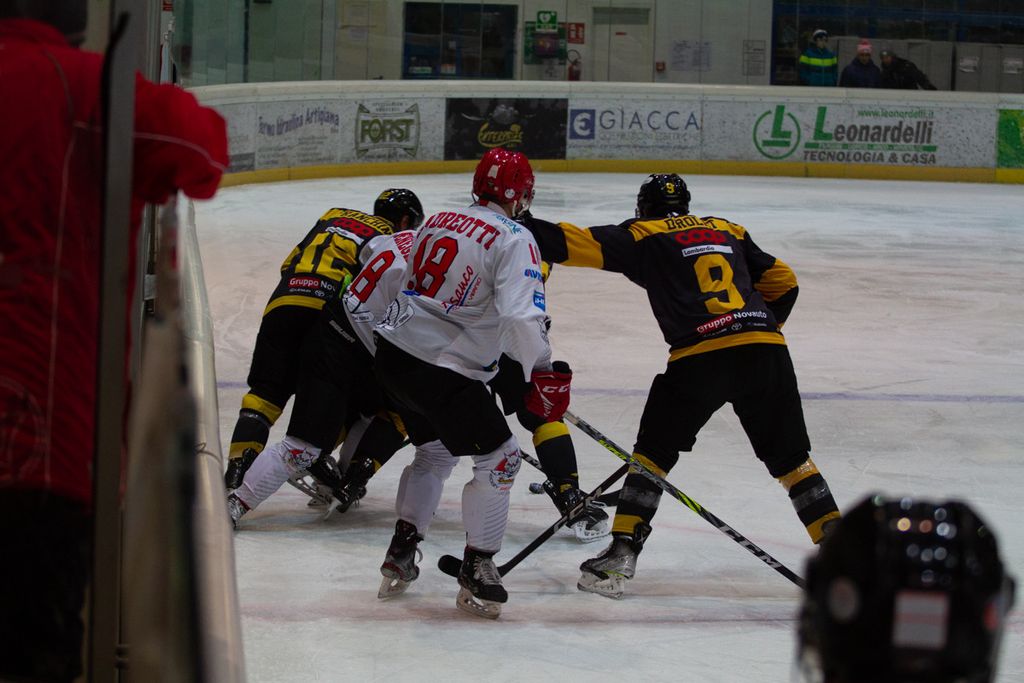 Anche i Mastini sono umani. E così basta staccare la spina un attimo, volendo ridurre la questione al sodo per i primi 5'41" di partita, quando Dalla Santa subisce 3 gol sui primi 3 tiri (su un disco messo in porta velleitariamente, sul palo libero, su una ribattuta) prima di essere sostituito da Perla sul 3-1 (di Marcello Borghi il solitario gol del temporaneo pari), per perdere dopo 8 vittorie consecutive e 12 successi nelle ultime 13 gare.
