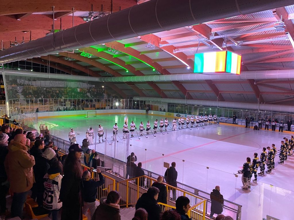 Tripudio all'Acinque Ice Arena e intervallo per rifare il ghiaccio