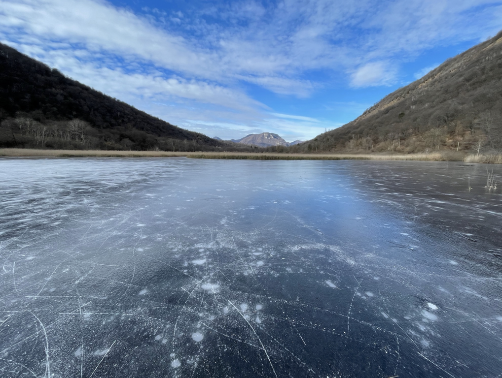 Le acque della Torbiera della Valganna completamente ghiacciate. Tanto da poterci camminare. Una situazione ordinaria nel mese di gennaio. Almeno un tempo.