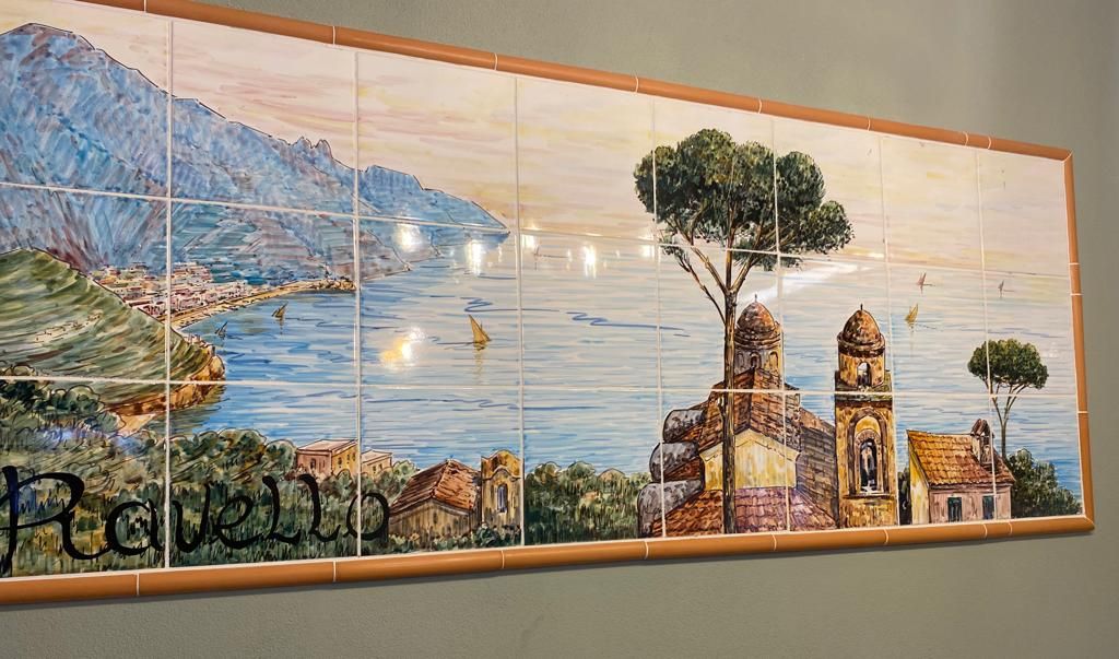 Una storia di famiglia che comunque si percepisce all'interno del locale grazie non solo al figlio Jonathan e alla figlia Consiglia, ma anche a un quadro dipinto sulla ceramica da papà Antonio sul quale campeggia la vista di Ravello e «la chiesa sotto la quale si vede ancora la casa dei miei genitori».