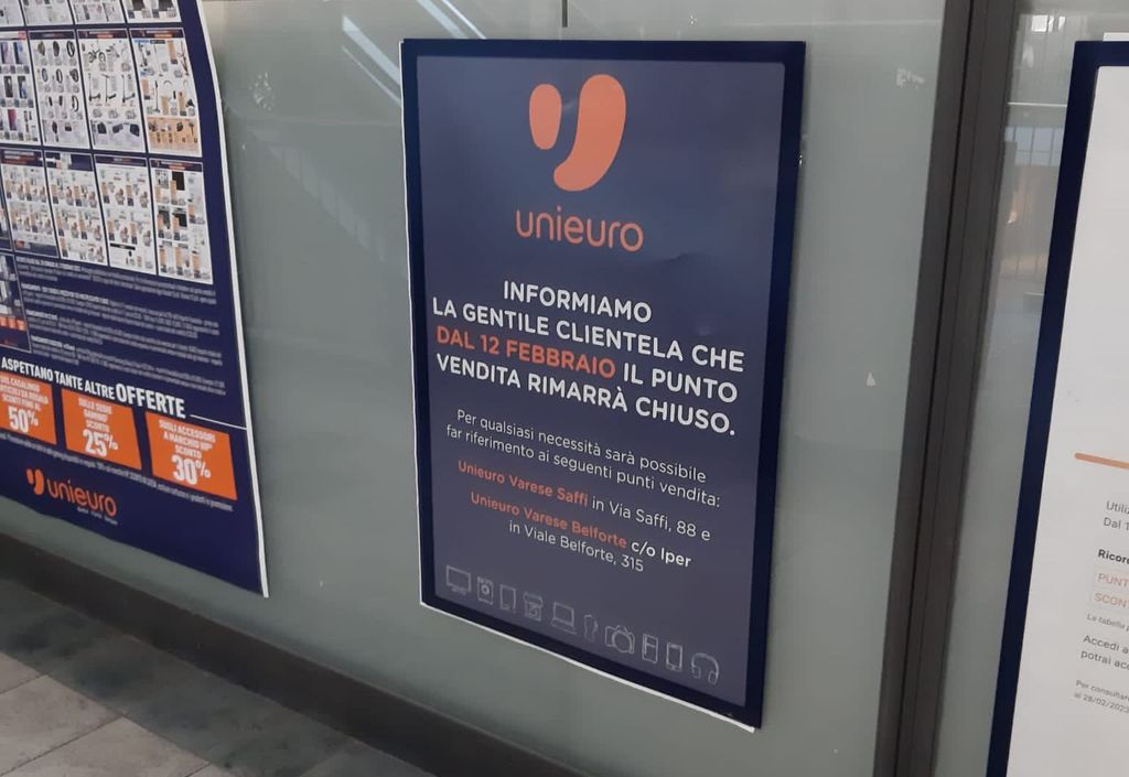 Un punto vendita storico lascia il centro di Varese. L'Unieuro delle Corti ha infatti annunciato che dal prossimo 12 febbraio il negozio resterà chiuso. Non è dato sapere se e quando l'esercizio di elettronica ed elettrodomestici riaprirà: la sensazione è che il centro commerciale Le Corti perderà una delle sue storiche vetrine, già appartenuta ad altri marchi prima di passare a Unieuro.
