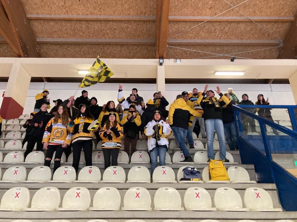 Lì, negli ultimi istanti decisivi solo quando sei vincente (l'1-1 e il 3-2 giallonero stasera secondo voi quando sono stati segnati, se non all'ultimo minuto?), al 63° minuto e 22° secondo Gianluca Tilaro ha sferrato la zampata del 4-3, al volo e a mezza altezza su assist dell'onnipotente Franchini, dopo non aver fatto quasi toccare il disco agli avversari nel supplementare e dopo un terzo periodo di sofferenza in cui i padroni di casa avevano trovato la nuova rimonta del 3-3.