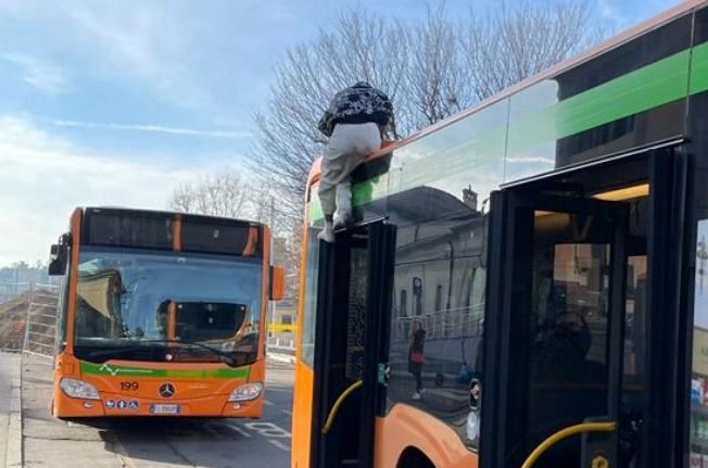Incredibile episodio quello avvenuto questa mattina nei pressi di piazzale Trieste a Varese: un uomo, in evidente stato confusionale, ha movimentato il traffico del trasporto pubblico stendendosi davanti al pullman diretto a Luino e bloccandone la partenza per una decina di minuti. Subito dopo si è spostato in mezzo alla strada e infine è salito su un altro autobus, questa volta della linea urbana rimanendo a piedi nudi sul tetto del veicolo.