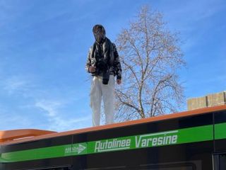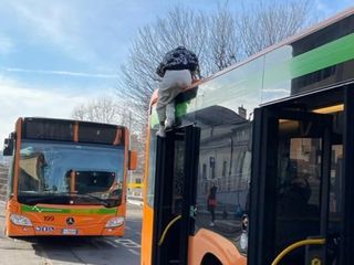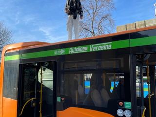 Incredibile episodio quello avvenuto questa mattina nei pressi di piazzale Trieste a Varese: un uomo, in evidente stato confusionale, ha movimentato il traffico del trasporto pubblico stendendosi davanti al pullman diretto a Luino e bloccandone la partenza per una decina di minuti. Subito dopo si è spostato in mezzo alla strada e infine è salito su un altro autobus, questa volta della linea urbana rimanendo a piedi nudi sul tetto del veicolo.
