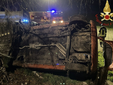 FOTO. Auto vola fuori strada e si ribalta: paura per tre ragazzi nel Comasco