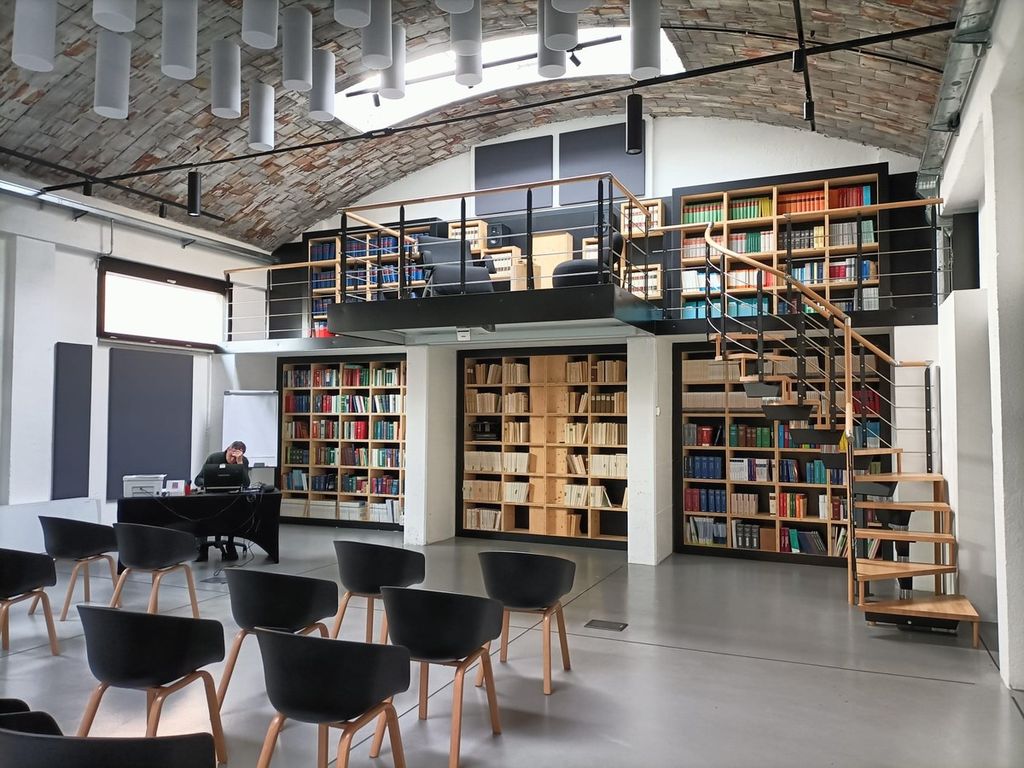 «Si può accedere attraverso tre ingressi – spiega Anna Frese, amministratrice di L@w – uno sull’area streaming, uno sulla saletta antecedente la sala più grande, uno sullo studio legale Vedani Bressan, titolari dello spazio. Ci troviamo in un vecchio laboratorio artigianale ristrutturato, è stato un restauro conservativo, sono stati utilizzati materiali come ferro e legno proprio per lasciare il tratto industriale, conferendo, al tempo stesso, un tocco più moderno, accogliente» e silenzioso, grazie ai pannelli e ai cilindri fono assorbenti collocati nella sala più grande.