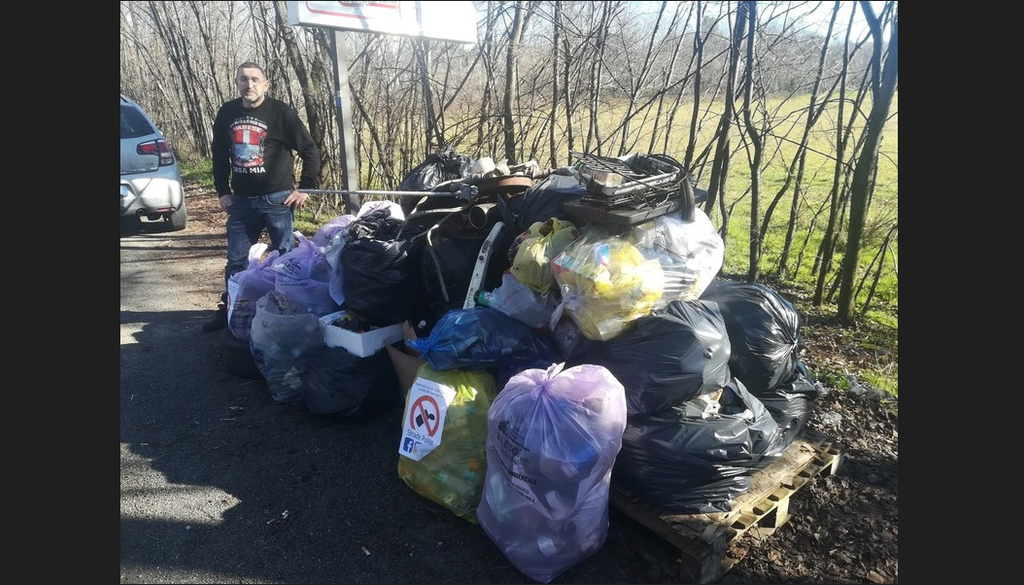 A lui, infatti, dobbiamo la nostra grande riconoscenza, da solo ha raccolto due cumuli di sacchi contenenti i rifiuti abbandonati da chi transita lungo quella strada».