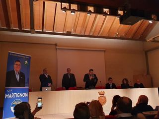 Circa duecento persone hanno gremito la sala delle ex scuderie Martignoni. La serata, intervallata dall’ironia del comico Max Pipitone, ha visto alternarsi sul palco amministratori ma anche i deputati Andrea Mascaretti e Andrea Pellicini, referente provinciale di Fratelli d’Italia a Varese. Anche Geronimo La Russa, figlio di Ignazio – presidente del Senato che nei giorni scorsi aveva scritto una lettera a sostegno dell’amico Martignoni – ha portato il suo saluto.
