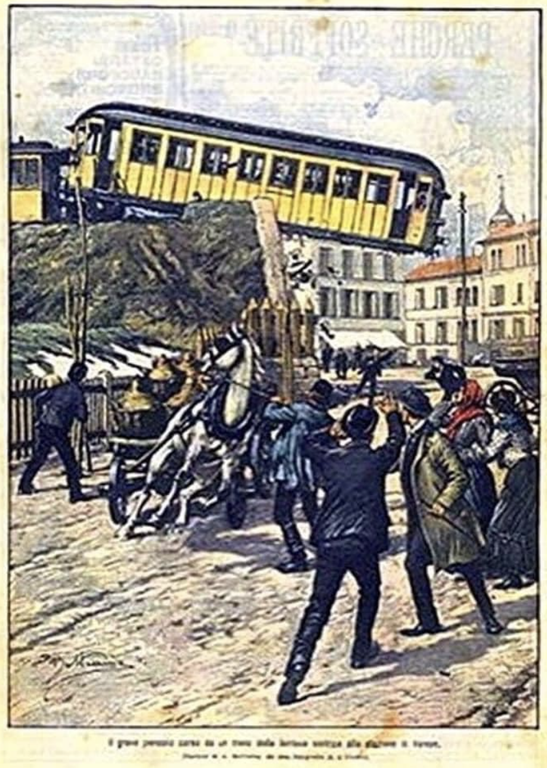 Come si deduce dalla foto scattata dal signor Pizzocri, il diretto Milano-Varese della Ferrovia Mediterranea, che dal 1865 assicurava il collegamento con la metropoli lombarda, per la rottura dei freni abbattè i respingenti e rimase in bilico sul piazzale.