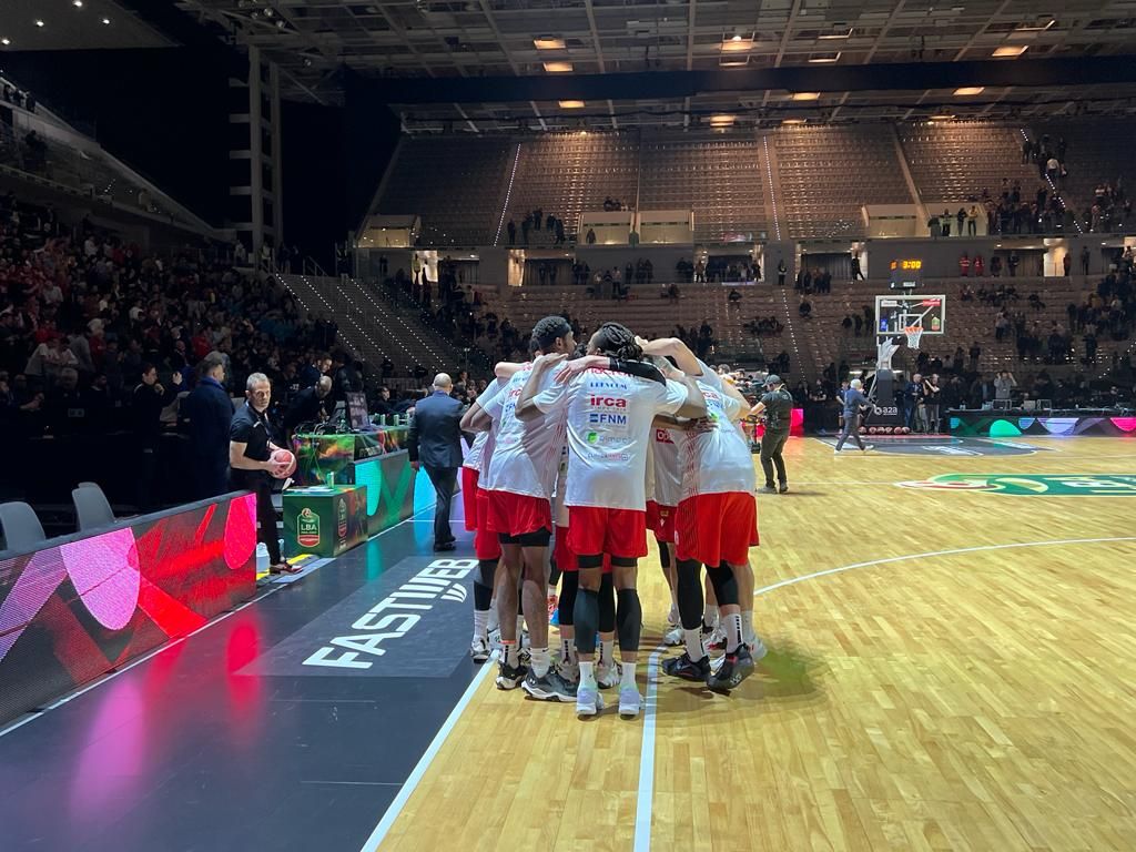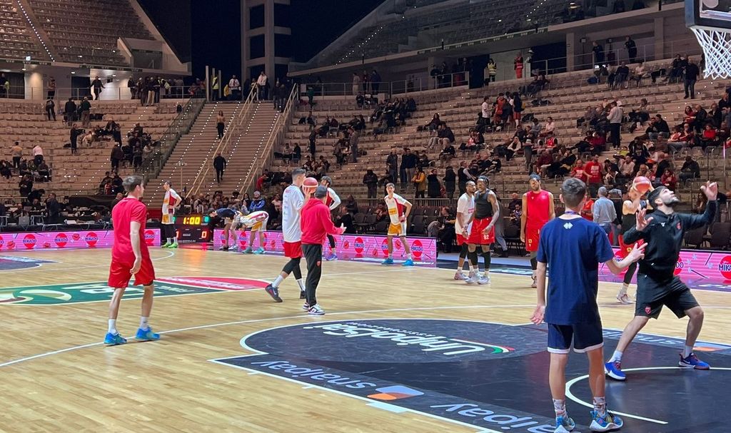 Openjobmetis già in campo per il riscaldamento pre-partita.