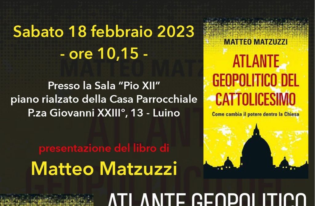 Sabato 18 febbraio alle 10.15 presso la sala "Pio XII" nella casa parrocchiale in piazza Giovanni XXIII 13 a Luino (VA) si terrà la presentazione del volume "Atlante geopolitico del cattolicesimo" di Matteo Matzuzzi.