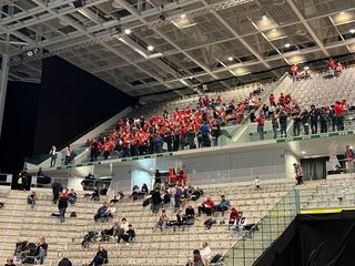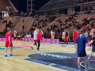 Openjobmetis già in campo per il riscaldamento pre-partita.