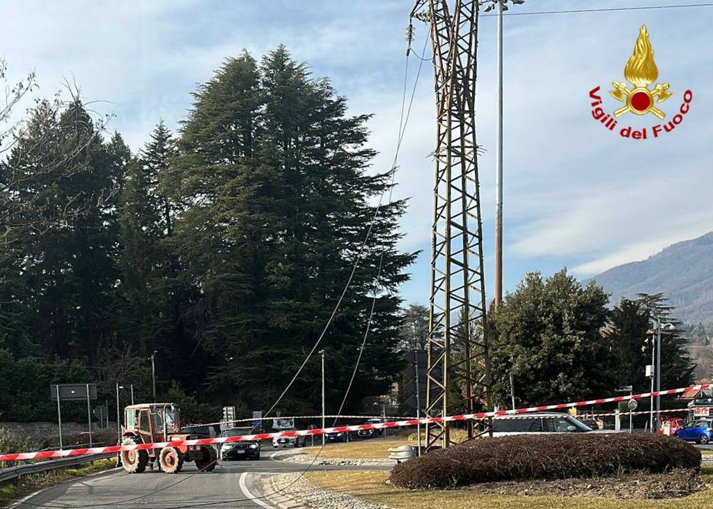 La pianta ha tranciato i cavi dell'alta tensione. Sul posto i vigili del fuoco per la messa in sicurezza dell'area e i tecnici della società elettrica