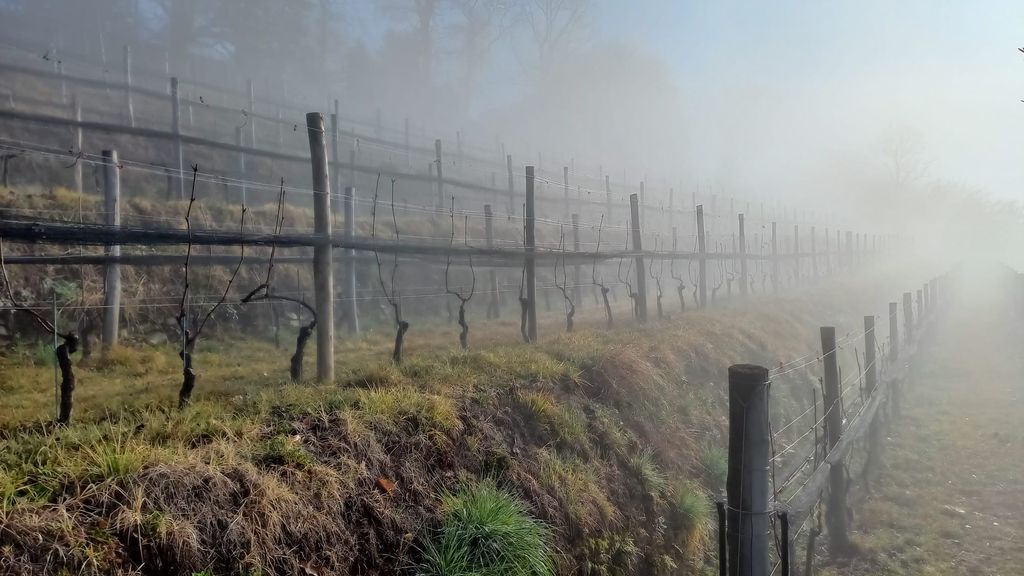 Siamo in cima a una torre, in un giorno che sa di primavera, e il Rosa ci guarda da lontano, quasi sgombro di nuvole e poco candido per la stagione. Sembra a volte di essere in volo ma, appena sotto, tra gli abeti giostrano le cince more e si ascolta la risata del picchio verde. Dall’altra parte una sorpresa, un angolo di Langa, un terrazzamento a vigneto che guarda a sud sud-ovest, una cosa che non ti aspetteresti se non sapessi che qui, dai tempi del Catasto di Maria Teresa d’Austria, già si vinificava, come del resto in buona parte del Varesotto.