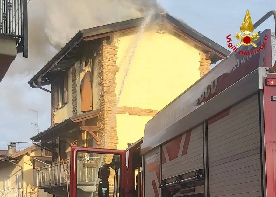 FOTO. Abitazione in fiamme a Cantello, intervengono i vigili del fuoco. Edificio inagibile