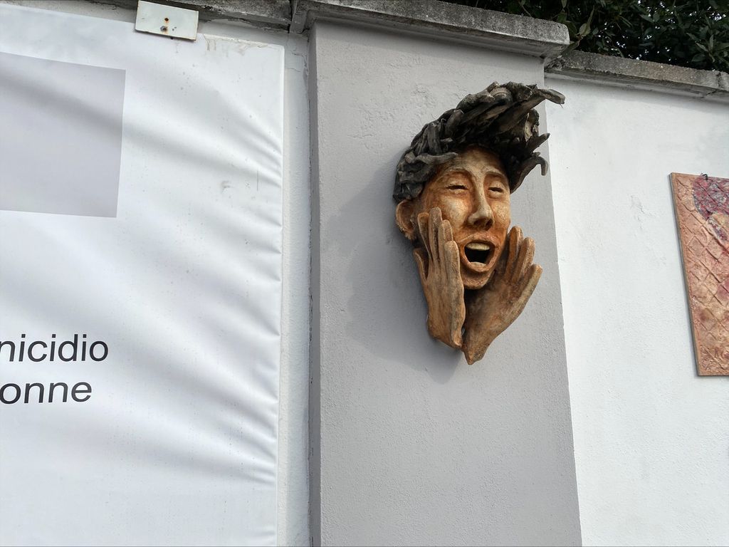Poi il numero di emergenza sul muro: «La gente deve sapere che non può trovare, non deve trovare, nessuna omertà perché tutti sono solidali nel manifestare nei confronti di chi chiede aiuto, quindi è bellissima questa cosa che sia esposto pubblicamente, come se fosse una mano tesa nei confronti di chi ha bisogno».
