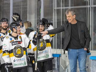 Markel Brown, ospite d'onore all'Acinque Ice Arena insieme allo staff della Pallacanestro Varese, che qui ormai è di casa come lo sono tanti varesini, si è alzato spesso ad applaudire e ad esultare ai gol dei Mastini, coinvolto dall'ambiente e dal tifo per una squadra che è entrata nel cuore di tutti e non esce più.