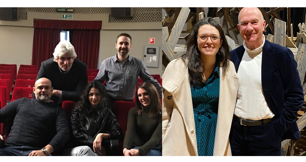 Ci sono anche gli istanti in cui respirare e scattarsi foto. Come quella che riunisce Marco Beretta, Alberto Oliva, Max Jota, Erica Zulikha Benato, Eleonora Boaretto. Poi, i dietro le quinte: Alice, appunto, e l'architetto Daniele Geltrudi di Educarte, che fu lo scenografo di Delia Cajelli anni fa.