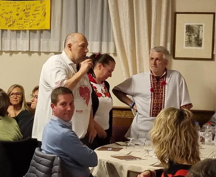In occasione della serata, il Vecchio Ottocento si è rivestito da bandiere italiane ed ucraine, firmata dal soldati, con musica ucraina di sottofondo. Maria e le figlie Olga e Daria ospiti a Luvinate e parte attiva nella rete solidale hanno allietato la serata con canti della tradizione ucraina.