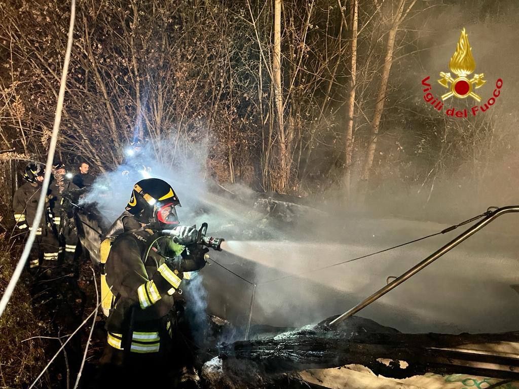 FOTO. Tradate, barca divorata dalle fiamme... nel bosco: incendio spento dai vigili del fuoco