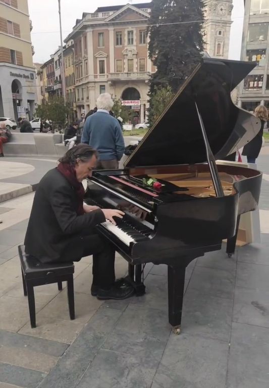 Paolo Zanarella, il “pianista fuori posto” è stato ospite ieri - 22 marzo - dell'Happening della Varese Design Week in piazza Monte Grappa, per la volontà delle organizzatrici di regalare a Varese una serata diversa, avvolta nell'atmosfera delle note di un pianoforte a coda, posizionato nel centro della piazza.