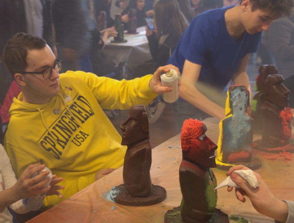 «Il nostro compito - ha raccontato Paola, consigliera di MOAI Paura ODV - è quello di puntare all'inclusività, cerchiamo di passare momenti sereni insieme ai ragazzi. MOAI Paura è un'idea di Fabio Longhin, insieme agli artisti UrbanSolid e all'ITE Tosi, nasce questa collaborazione che porta al risultato che abbiamo visto oggi, una vera e propria Isola di Pasqua bustocca fatta di MOAI di cioccolato verranno decorati con spray edibili e cioccolato colorato da tutti i ragazzi anche non dell'Associazione».